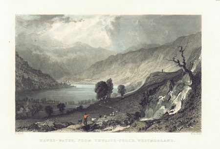 | P7524 | Westmorland | Hawes Water | Hawes Water from Thwaite Force, Westmorland, 1833. Drawn by T Allom and engraved by W Le Petit. Published by Fisher, Son & Co. Steel engraving with later hand colouring. | h 98mm x w 156mm | £8 |  |